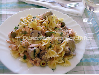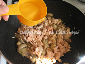 6. Juntar o peixe, um pouco do caldo de cozer a massa e as natas. Temperar com sal e pimenta;