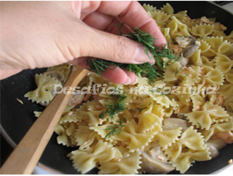 8. Apagar o lume e juntar a massa, envolvendo cuidadosamente. Partir o funcho em pedaços e envolver.