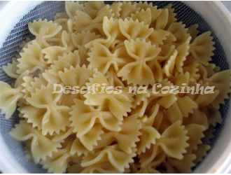 2. Quando a massa estiver cozinhada, escorra-a num passador e solte-a para que as massas não se peguem uma às outras. Reservar.