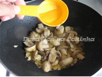 5. Adicionar o vinho branco e deixar os cogumelos acabarem de cozinhar;