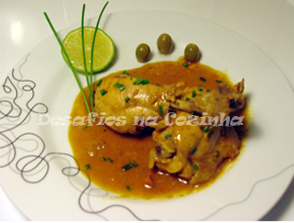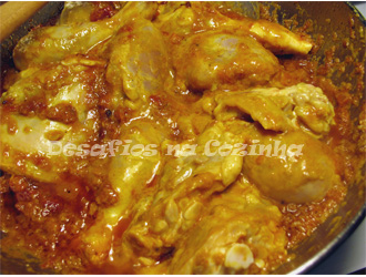 1. Numa taça envolver o frango com todos os ingredientes da marinada e reservar no frigorífico pelo menos 3 horas;