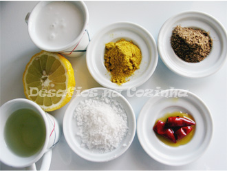 – 1 colher de café de chilli ou piripiri em pó (ou menos, consoante o gosto) ou malaguetas.