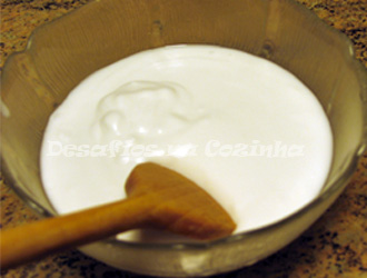 6. Em duas colheres de sopa de leite dissolver uma colher de café de amido de milho e juntar ao frango;
