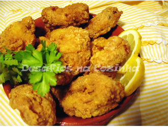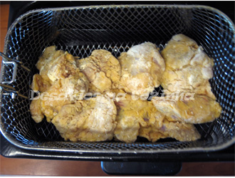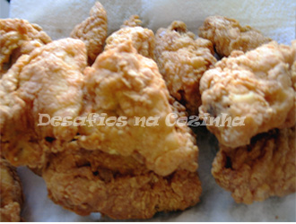 5. Aqueci óleo a 190º na fritadeira e fritei o frango;