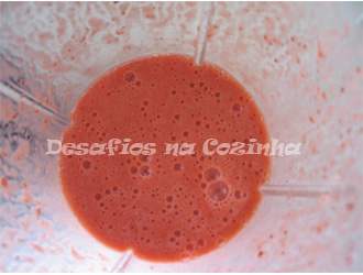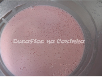 1. Juntar os morangos, as duas colheres de leite, o açúcar e triturar;