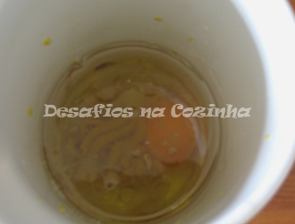 1. Num copo alto e estreito deitar o ovo e o azeite.