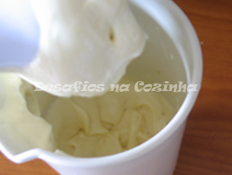 3. Levantar lentamente a batedeira em movimento, até toda a gordura estar envolvida na maionese.