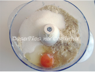 2. Quando estiver misturado, adicionar o açúcar, o ovo e o sal. Voltar a dar toques intermitentes;