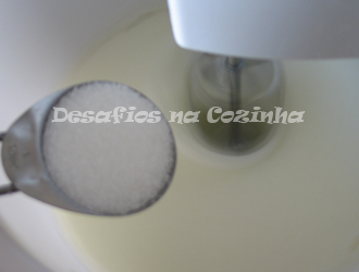 2. Enquanto as claras batem, juntar as colheres de açúcar uma a uma e continuar a bater;
