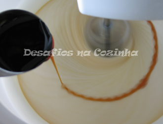 3. Quando as claras estão em neve, adicionar as colheres de caramelo e envolver;