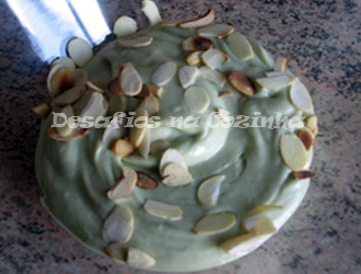 3. Numa taça colocar camadas de mousse e amêndoas e na última decorar com amêndoas.
