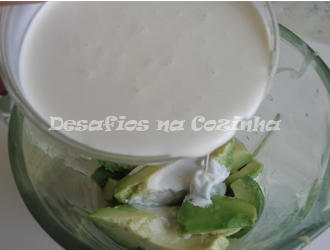 1. No liquidificador juntar todos os ingredientes e bater até apresentar a textura de mousse.