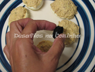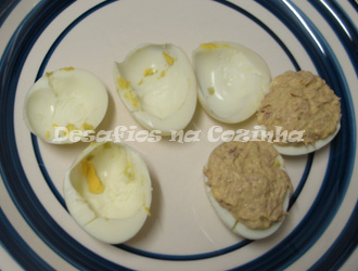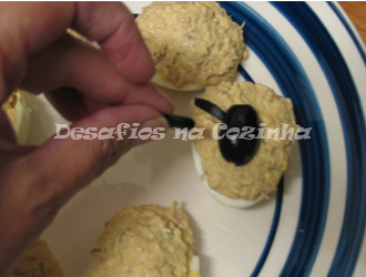 4. Rechear cada caixa de clara com a pasta de atum e decorar a gosto;