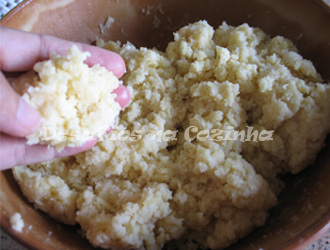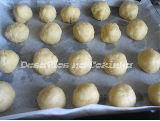 5. Fazer pequenas bolas, colocar numa forma e levar ao forno a 200º cerca de 10 a 15 minutos (até ficarem douradas);