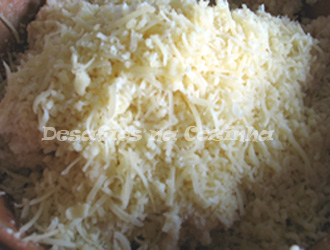 100g de requeijão, 150g de parmesão e 150g de mozzarella ou outra mistura, convém ter sempre na mistura queijo curado.
