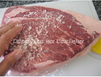 2. Barrar todo o lombo com sal grosso e polvilhar com pimenta.