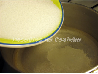 1. Levar ao lume um tacho com 0,5l de água e o açúcar;
