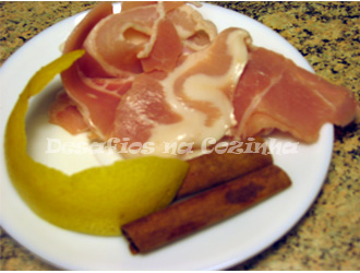 2. Entretanto ligar o forno a 180º e colocar lá um tabuleiro com água (com uma casca de limão para o tabuleiro não ficar escuro);