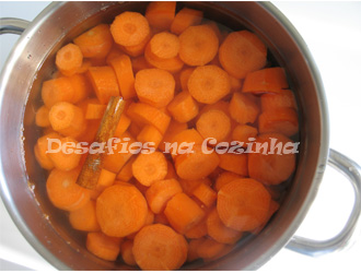 1. Descascar as cenouras, cortar em rodelas e levar a cozer em água com sal e um pau de canela.
