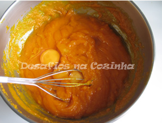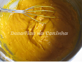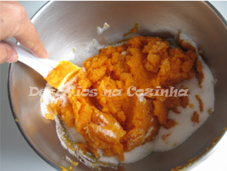 3. Numa tigela juntar o puré de cenoura com o açúcar e depois a manteiga;