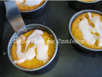 9. Quando as queijadas estiverem frias, fazer linhas de cobertura por cima.