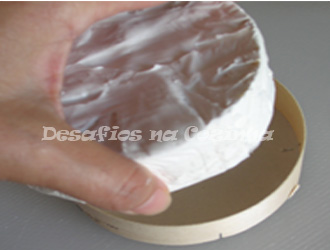 1. Retirar o papel de plástico que envolve o queijo e voltar a colocar o queijo dentro da caixa de madeira;