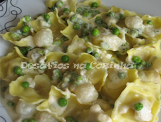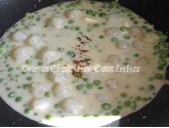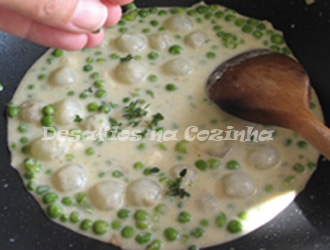 7. Deitar o molho sobre as ervilhas e mexer;