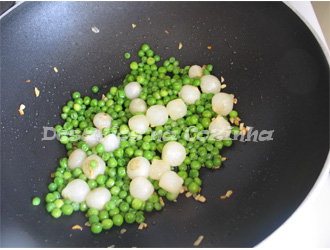 5. Reservar cerca de 12 ervilhas para decoração e juntar as restantes às cebolas;