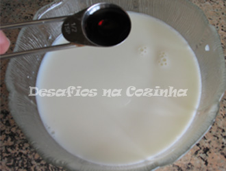 6. Numa taça juntar o leite, o vinho do Porto e o queijo mozzarella;