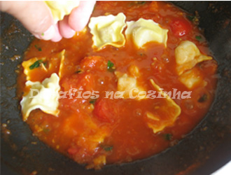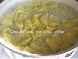 Cozinhar os ravioli em abundante água a ferver, temperada com sal (1 colher de chá de sal por cada litro de água), cerca de 4 minutos.