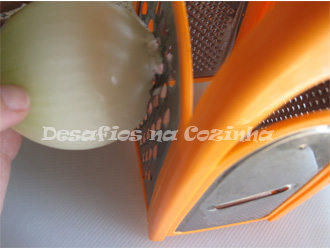 2. Ralar a cebola e picar os alhos.