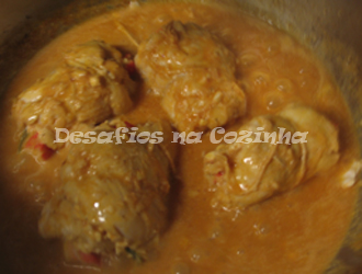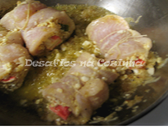 Quando estiver refogado deitar os rolinhos e deixar alourar;