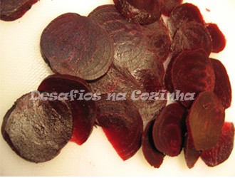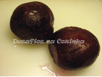 Quando tiramos as beterrabas da embalagem é preciso ter cuidado para não sujarmos a roupa com o vermelho das beterrabas.
