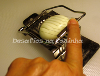 7. Cortei o ovo em fatias e acomodei-o em cima do requeijão;