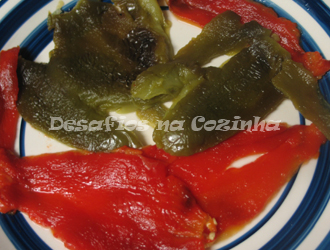 Quando estiverem assados, colocar num saco cerca de 5 minutos, para facilitar a remoção da pele.