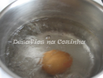 Colocar o ovo em água fria e descascar com cuidado para não danificar a clara;