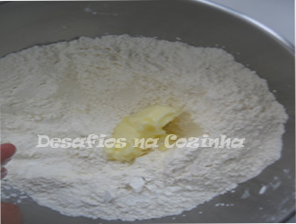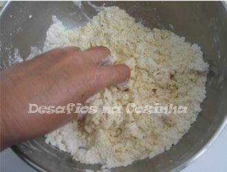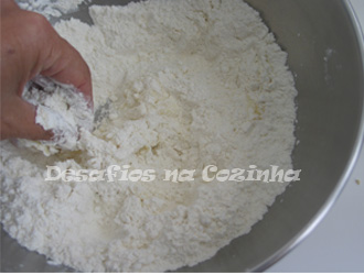 3. Deitar a manteiga e com os dedos ir envolvendo;