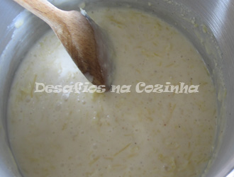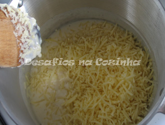 3. Quando o béchamel estiver quente, juntar os queijos e envolver bem;