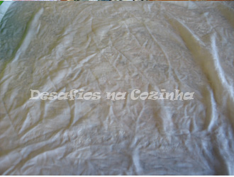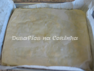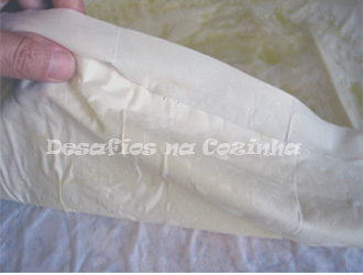 Por cima estender as folhas de massa filo e cobrir com outro pano húmido.