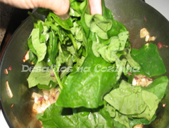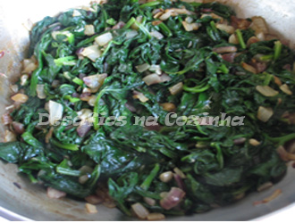2. Quando a cebola estiver dourada, juntar os espinafres e deixar cozinhar.