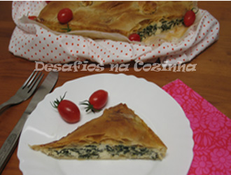 12. Com uma faca afiada fazer cortes longitudinais no topo da massa, que facilitam partir a spanakopita depois de cozinhada.