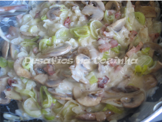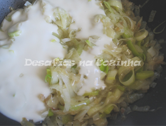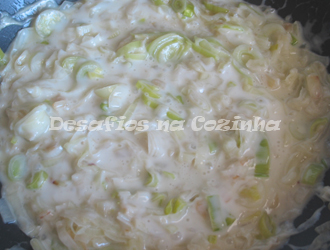 5. Já fora do lume, adicionar o molho bechamel ao alho francês.