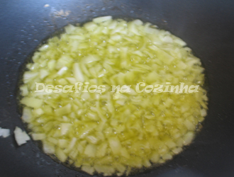 3. Entretanto num tacho fazer um refogado com a cebola picada, alho picado e azeite.