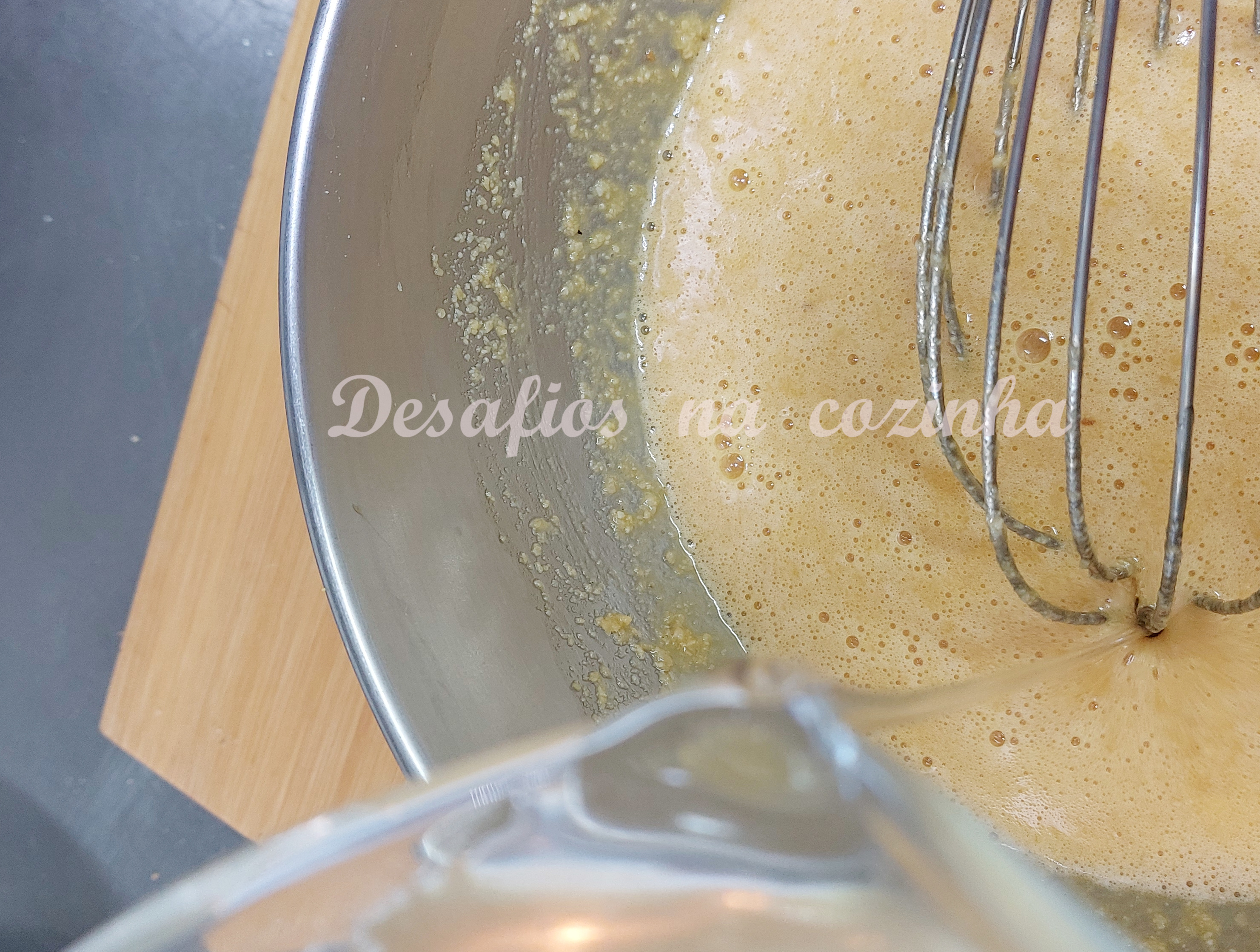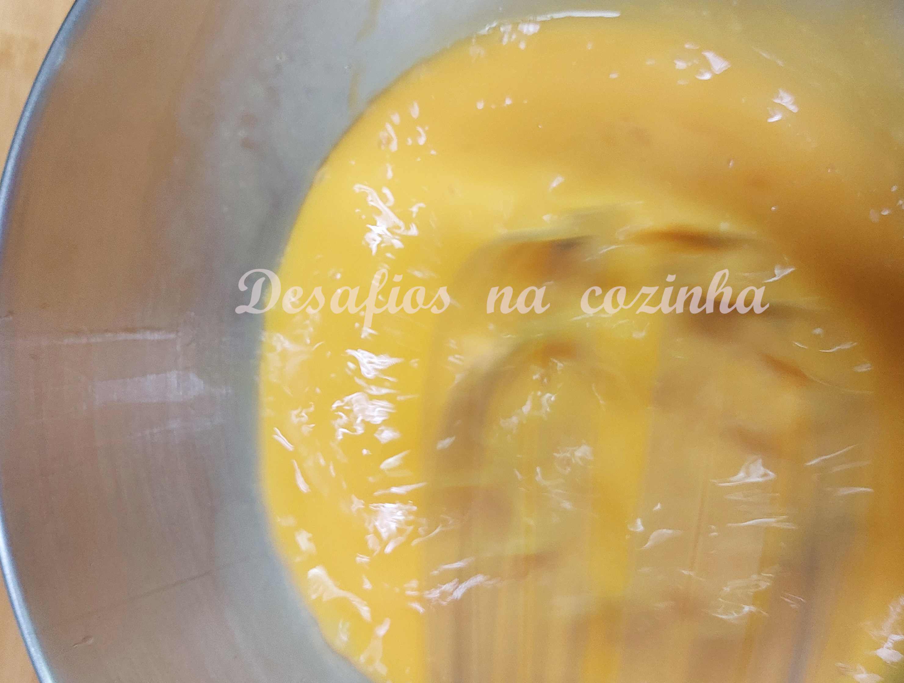 Lentamente adicionar a calda em fio, batendo sempre.