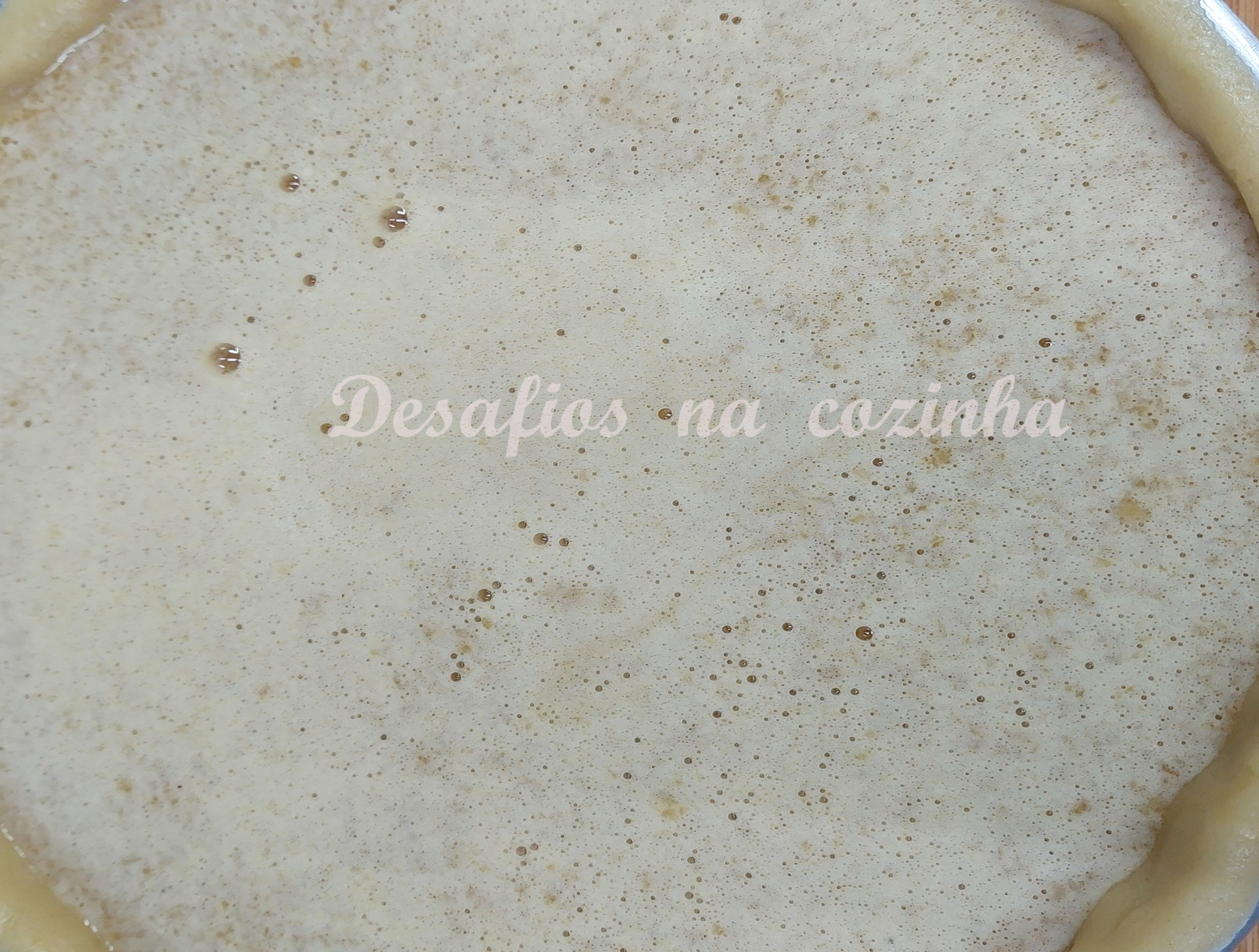 Deitar o recheio na forma e polvilhar generosamente com açúcar em pó. Levar ao forno pré-aquecido, durante cerca de 35 minutos a 180ºC, podendo o tempo variar de acordo com a especificidade do forno.