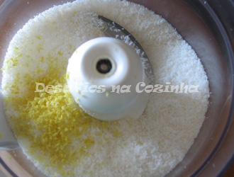 2. Triturar o coco ralado com a raspa de limão;