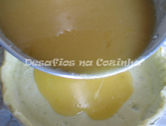 5. Deitar na tarteira previamente forrada com a massa quebrada e levar a 180º, cerca de 30 minutos ou até ficar dourada.