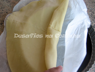 1. Forrar uma tarteira com a massa quebrada e picar com um garfo;