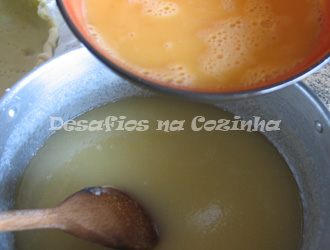 4. Deixar arrefecer a calda de coco e juntar os ovos batidos;