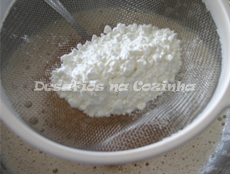 5. Adicionar o amido de milho peneirado e o vinho moscatel e envolver bem ( ou a farinha de amêndoa ou as nozes picadas).